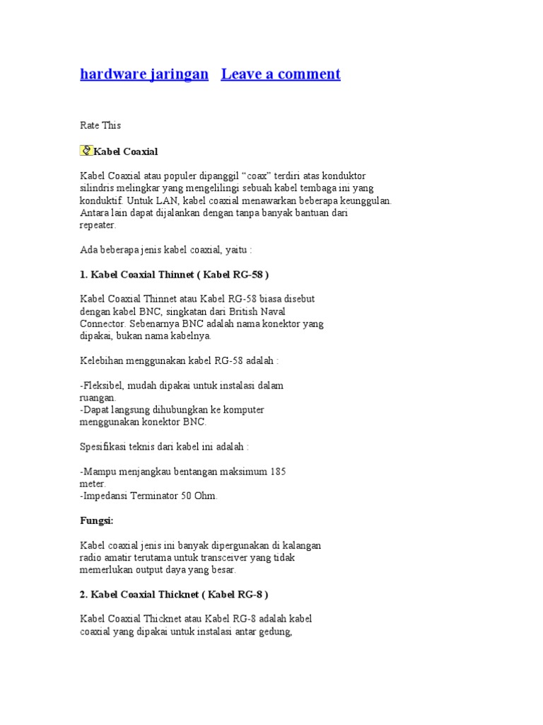 Kabel Coaxial Pengertian Fungsi Kelebihan Dan Kelemahan Beserta Karakteristiknya Dalam Jaringan Komputer Tutorial Komputer